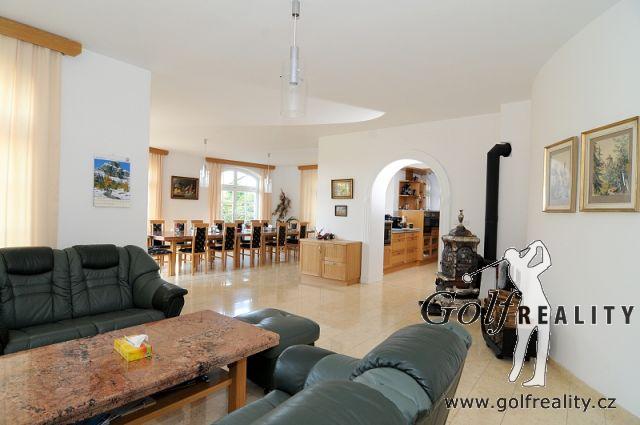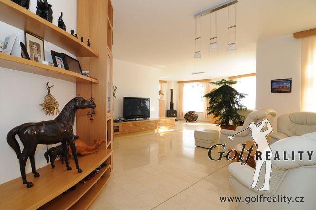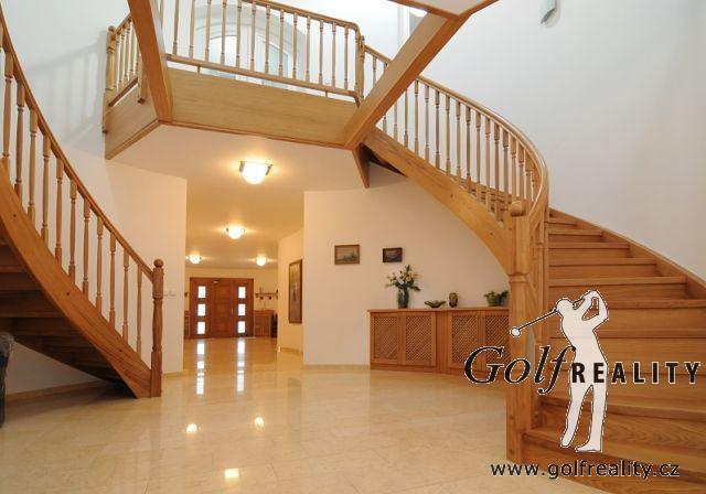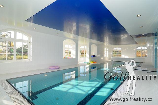 Nabízíme Vám k prodeji luxusní rodinný dům se zahradou, příjemným výhledem , trojgaráží a vnitřním vyhřívaným bazénem v klidné lokalitě 5 min. od Golf klubu Štiřín, 15 minut autem od Prahy na pozemku 2 858 m2.