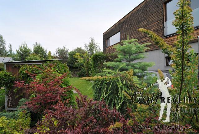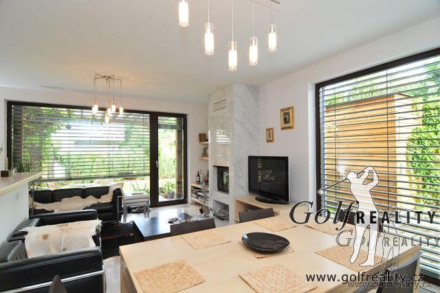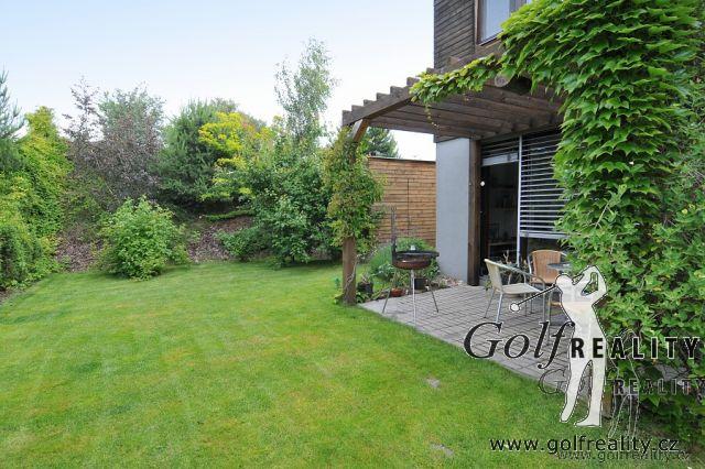 Nabízíme Vám ojedinělou příležitost ke koupi rodinné rezidence v uzavřeném, luxusním, komorním souboru domů v těsné blízkosti golfového hřiště Golf Park Hostivař a lesoparku Hostivař. Jedná se o koncový řadový RD s nadstandardně udržovanou zahradou se sklípkem, zahradním domkem, terasou s grilem, závlahou a zpevněnou plochou pro parkování druhého vozu. V zadní části je zahrada oddělena od okolí valem se vzrostlou zelení, který tak nabízí naprosté soukromí. Dům je nabízen včetně mobiliáře – kuchyňská linka se spotřebiči, velké množství úložných prostor, sedací souprava, nábytek na míru – vše dle výběru architekta v nejvyšší kvalitě provedení. Dům nabízí v přízemí zádveří se vstupem do garáže, samostatnou toaletu, chodbu s vestavěnými skříněmi, zázemí pro kuchyň, jídelní kout a obývací pokoj s mramorovým krbem, který je prosvětlen ze dvou stran skleněnými stěnami s možností výstupu do zahrady. V horním patře jsou k dispozici tři pokoje a velkoryse řešená koupelna se střešním světlíkem. Jedná se o velmi klidné a žádané bydlení s velmi dobrou dostupností do centra. Doporučujeme!!