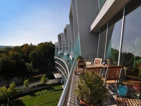 Nabízíme exkluzivní a výborně řešený byt 3+kk 190 m2 (z toho byt 165, terasa 13 a atrium 12) + sklep 11 m2 a 2 garážová stání ve vyjímečném projektu HŘEBENKY XY architekta Radana Hubičky. Ojedinělý a výjimečný projekt s bazénem, squashem, fitness a ostrahou. Byt je umístěn v nejlepší sekci celého projektu v předposledním podlaží s výhledem ! U každé ložnice vlastní koupelna a šatna.+ WC hosté. Dostatek vestavěných úložných prostor. Nadstandartní vybavení bytu - designová kuchyň se spotřebiči Miele, dřevěné podlahy, případně leštěná žula. Koupelny obloženy kaleným sklem v kombinaci s přírodním kamenem. Byt je vybaven tzv. Smart home - inteligentní domácností. Neuvěřitelně prostorný obývací prostor (82 m2) má jednu stěnu celoprosklenou s přímým výstupem na terasu.