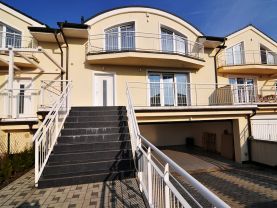 Nabízíme Vám ke koupi novostavbu řadového RD ve velmi vyhledávané části Průhonic. Veškerá občanská vybavenost v místě. Dům je umístěn v lokalitě nové zástavby. Při stavbě byly v interiérech použity nadstandardní materiály. Vytápění objektu je plynovým kotlem přes podlahové vytápění, které je instalováno v celém domě. Na podlahách je dlažba nebo plovoucí podlaha. Designová kuchyně je osazena vestavěnými spotřebiči AEG. V obývacím pokoji je komín pro krb. V přízemí domu je příprava pro elektrické rolety. V suterénu je technická místnost a prádelna. Dům má dva balkóny, terasu a zahradu. Součástí domu je dvougaráž.