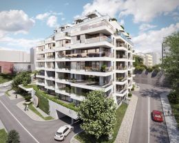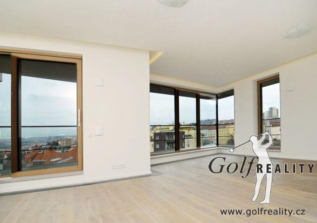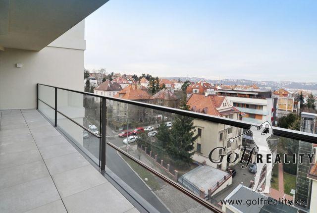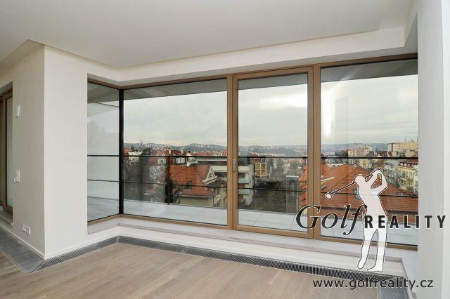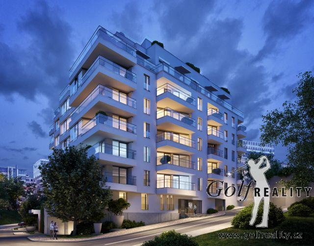 Nový 3+kk 130 m2 (100 m2 byt + 30 m2 terasy), parkovací stání, sklep, Praha 4 - Podolí, metro C, v těsném sousedství prestižní vilové čtvrti, Vyšehradu a Vltavy. Výhledy. Kvalitní designový projekt z let 2017/2018.